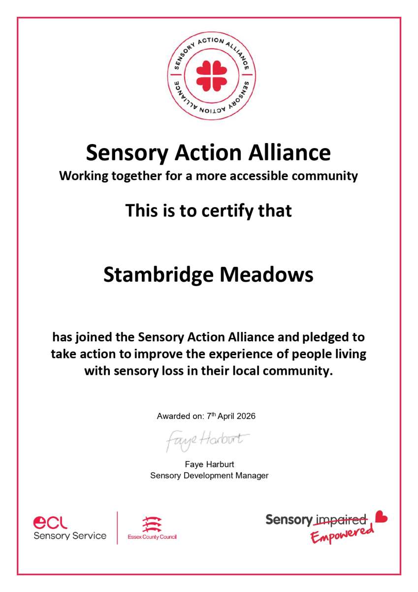 By joining the alliance, Stambridge Meadows is working alongside a network of organisations dedicated to improving awareness, understanding, and accessibility for individuals with sensory needs. This partnership supports our aim to ensure that everyone who visits or engages with us feels comfortable, respected, and able to fully participate.
